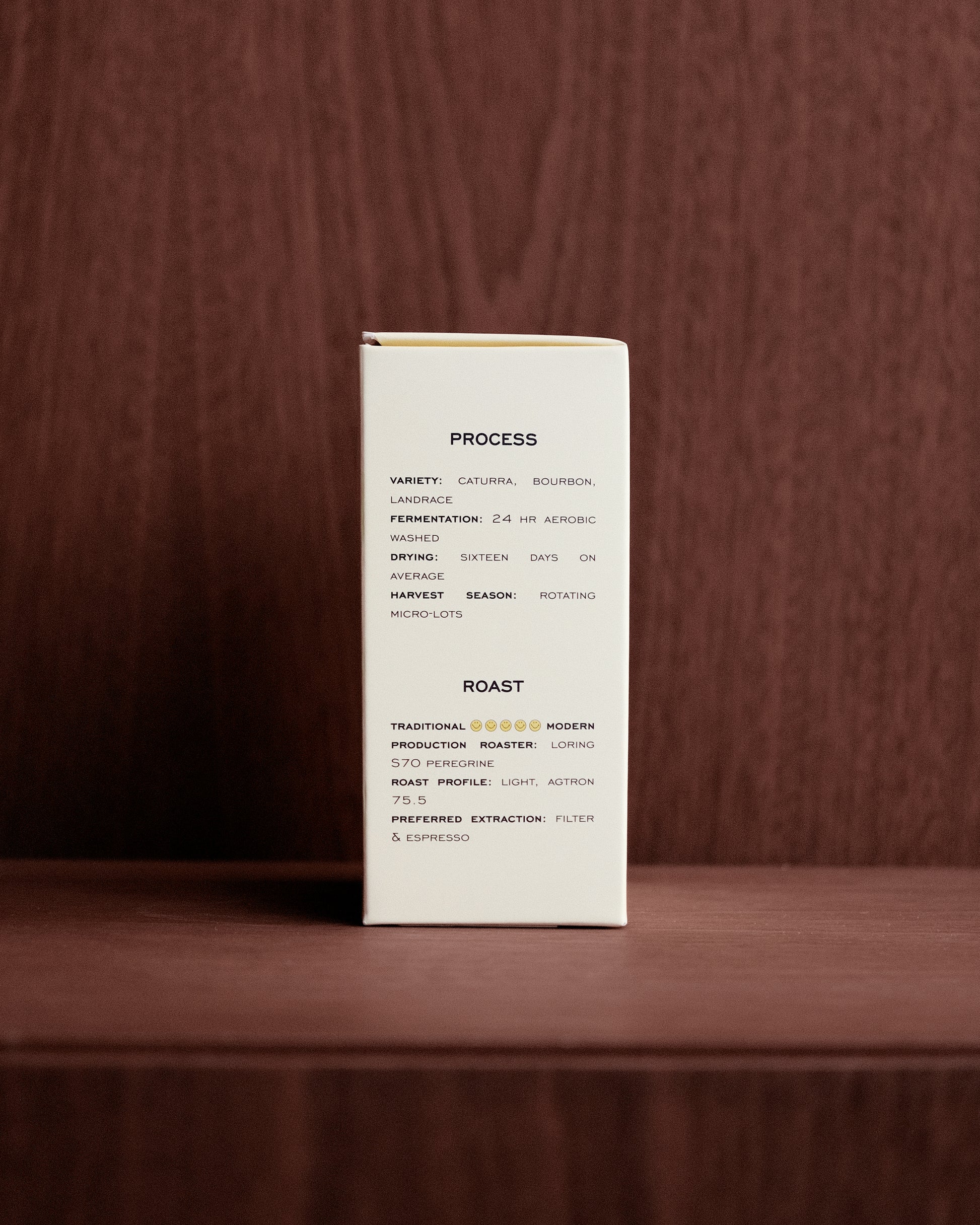 COMPRISED OF COFFEES FROM ETHIOPIA AND COLOMBIA, THIS BLEND IS DESIGNED TO WORK EXCEEDINGLY WELL AS A MODERN, FLORAL ESPRESSO OR AS A BALANCED FILTER COFFEE. WE ROAST THIS COFFEE TO BE LIGHT AND EXPRESSIVE, WHILE STILL MAINTAINING THE SWEET CUP PROFILE OF BOTH ITS COMPONENTS. THIS BLEND WILL CONVERT EVEN THE MOST SKEPTICAL TO SPECIALTY.
